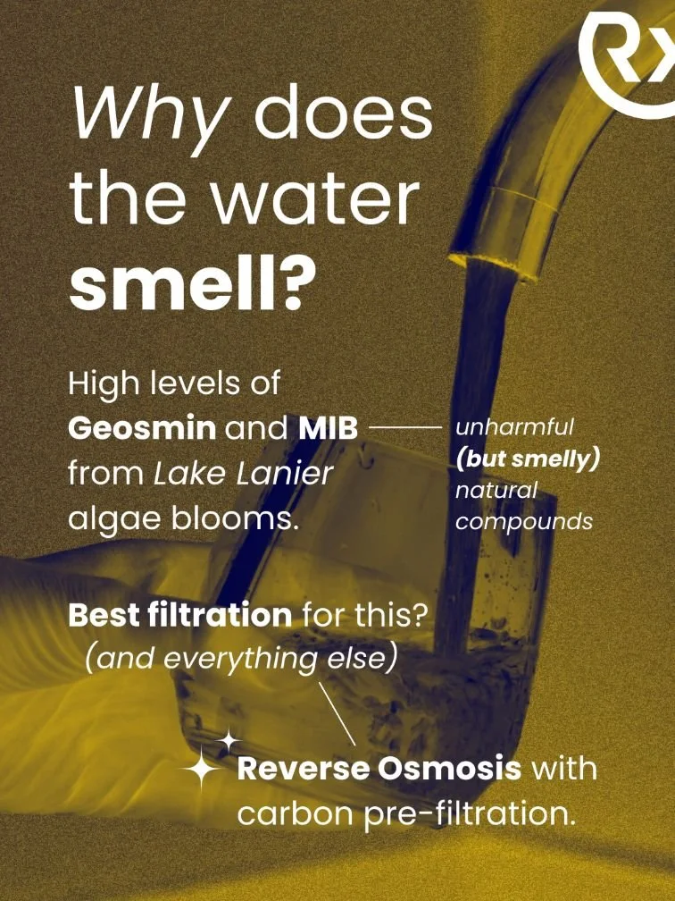 It’s likely due to the geosmin and MIB compounds produced by algae blooms in Lake Lanier. They’re technically harmless but very noticeable, even in small amounts.
